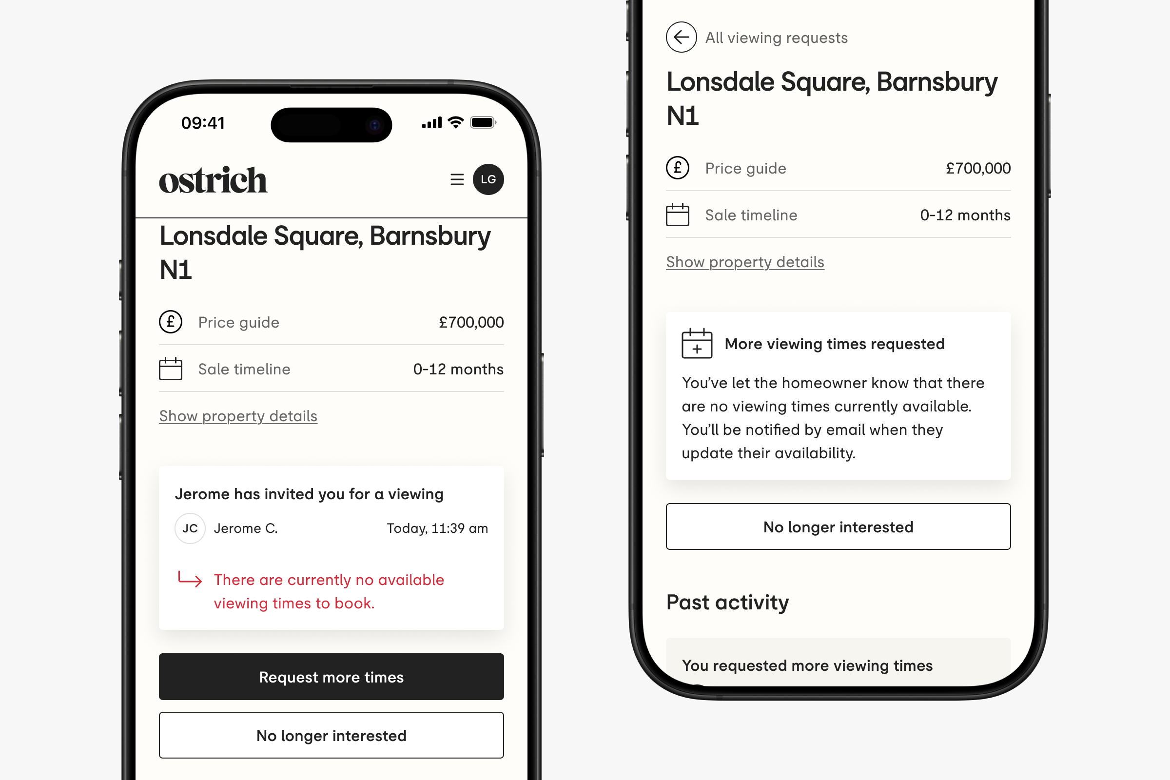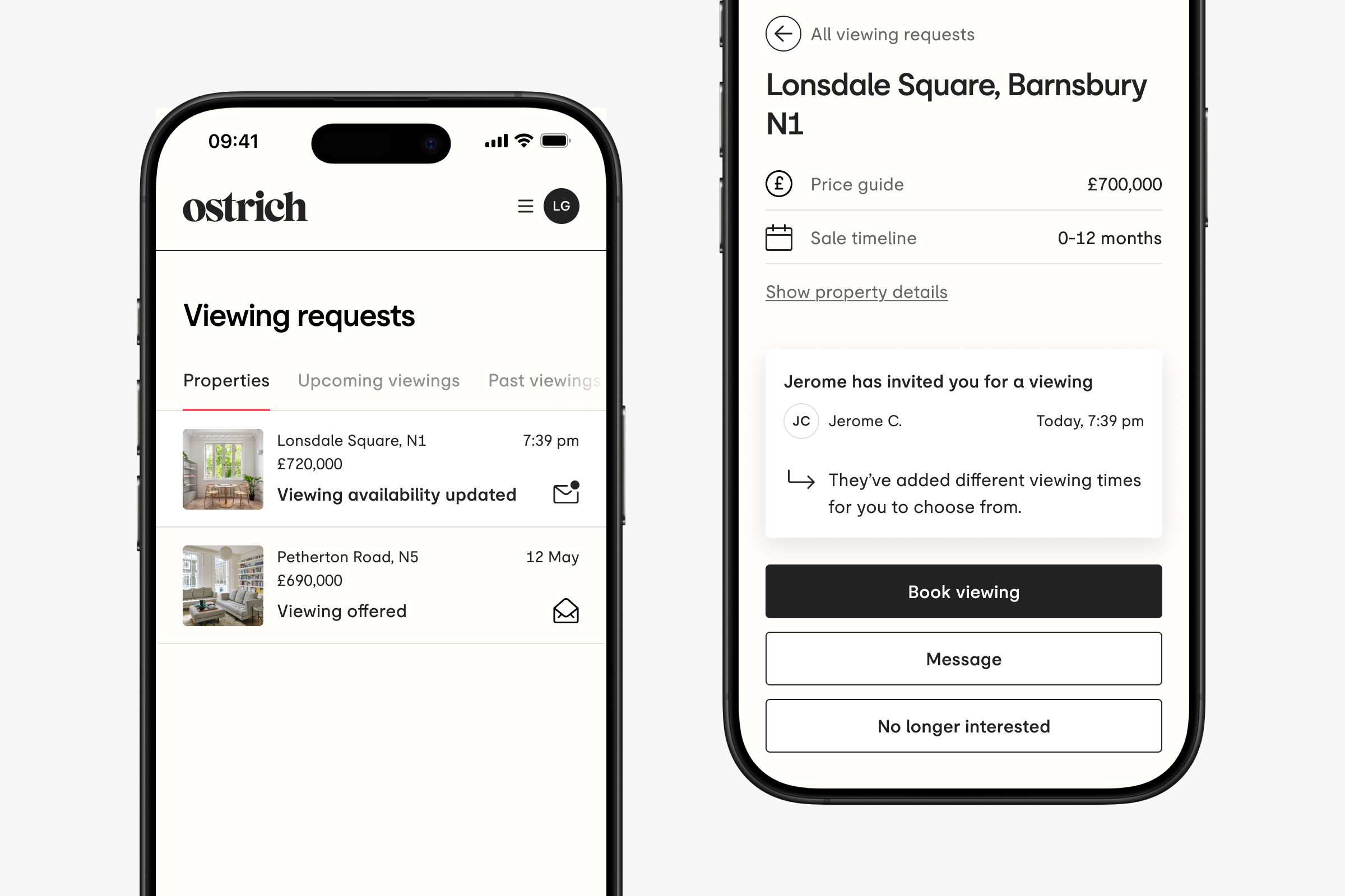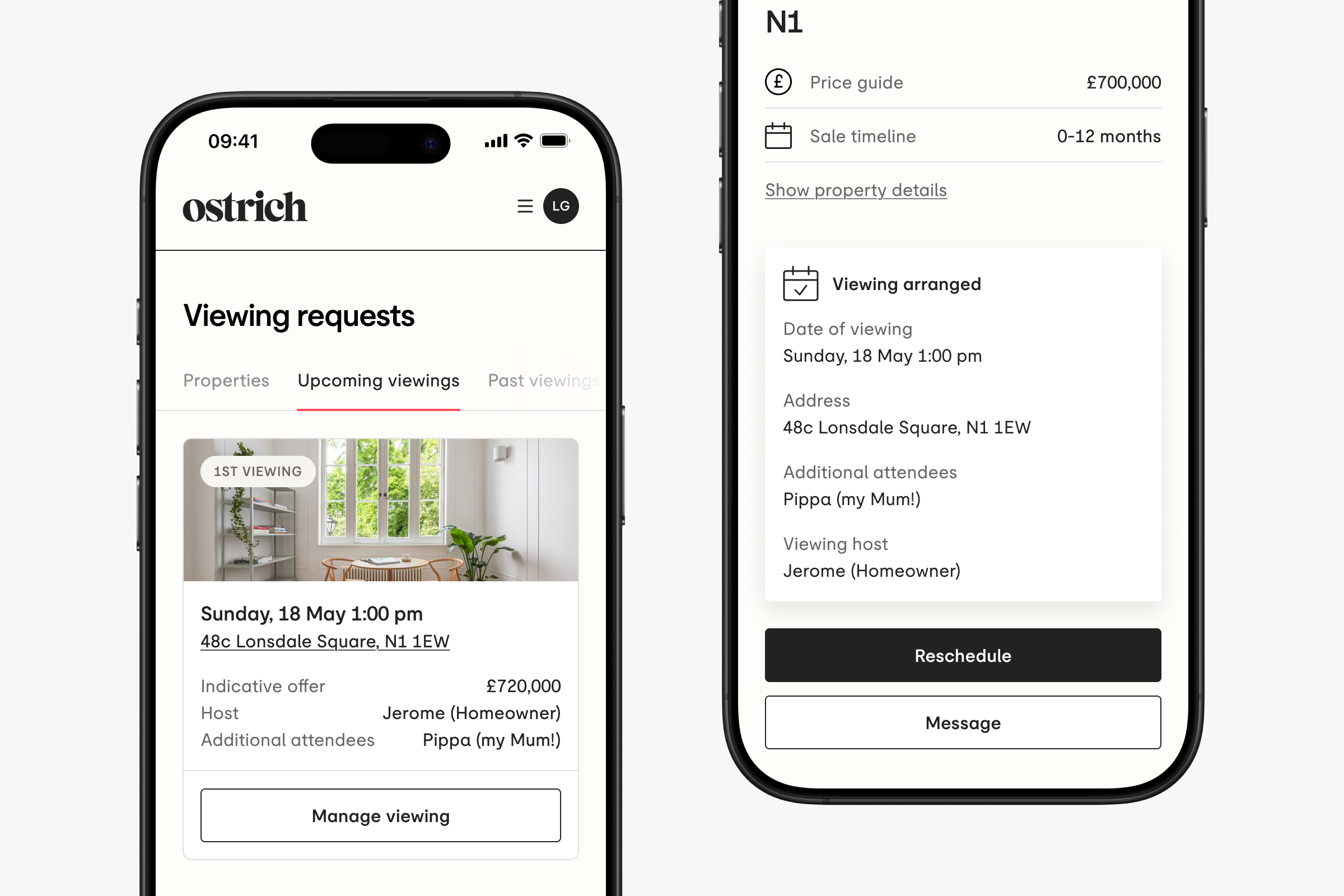 If you need to change your additional attendees before the viewing, simply drop us an email at hello@ostrich.co.uk and we can update the viewing details for you and let the owner know.