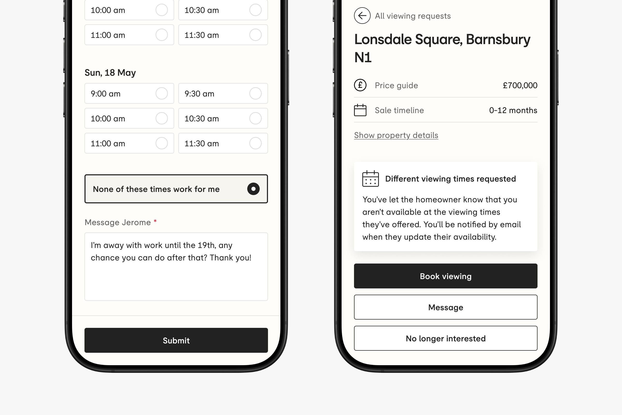 If none of the suggested times suit you, you’ll be able to let the homeowner know and send a message with details of when you’re free.