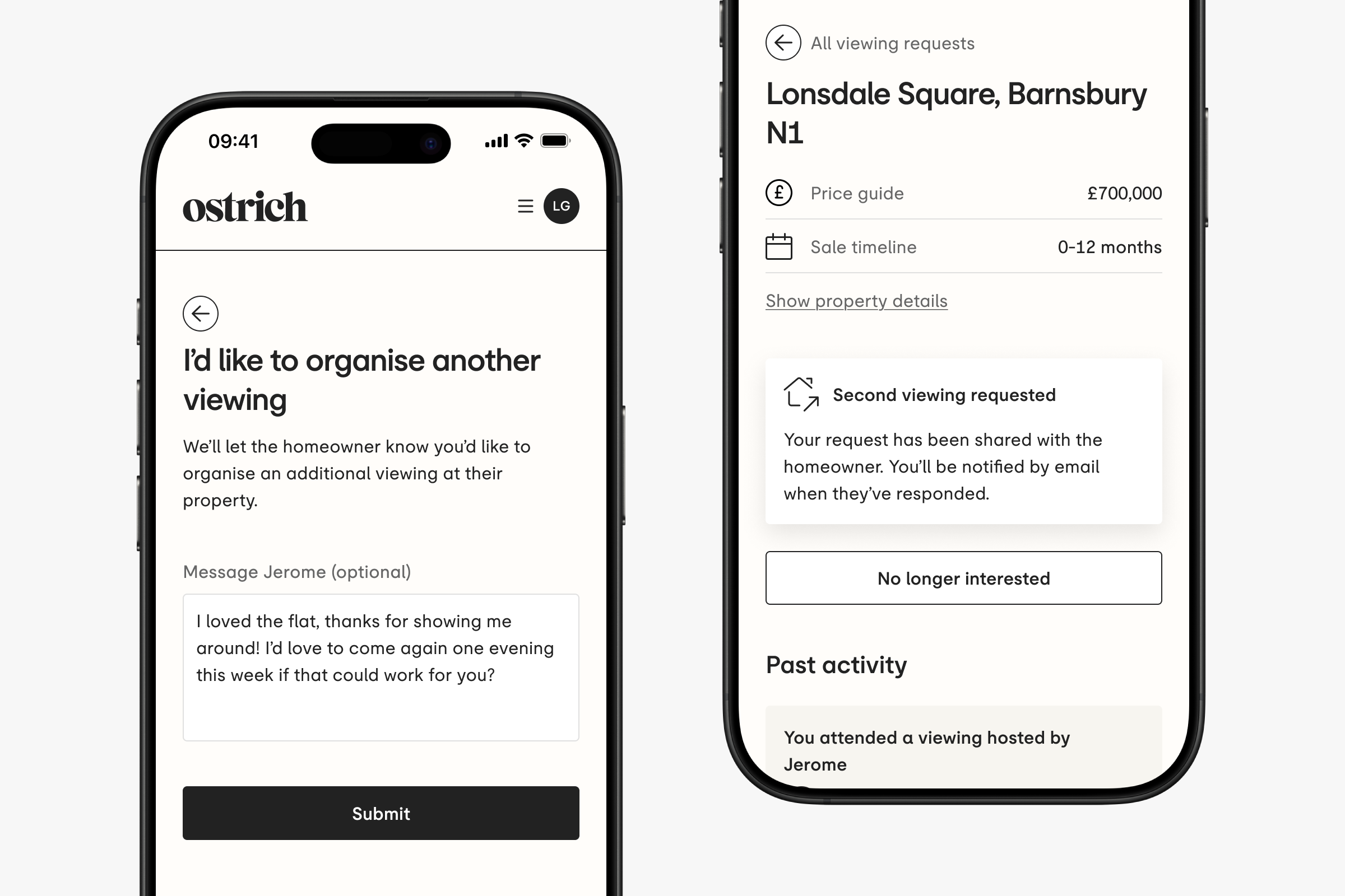 If you’d like to proceed with a formal offer after your second viewing, you can easily do so from your Ostrich account. For more information, check out our guide on making a formal offer.