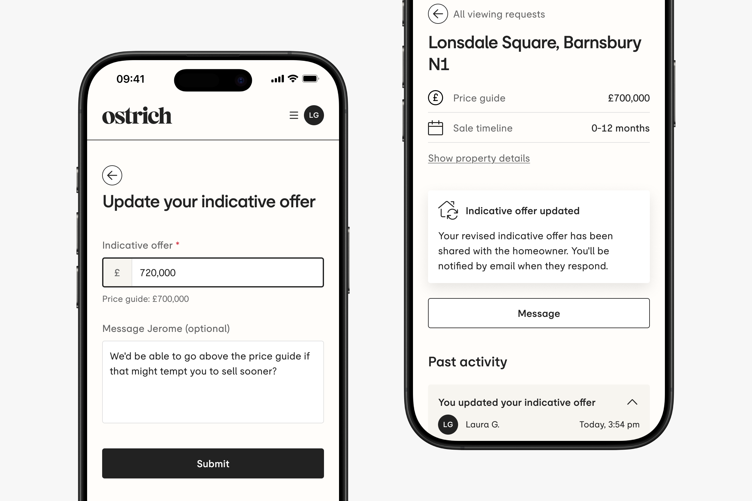 Once you’ve submitted your offer, a member of the Ostrich team will share it with the homeowner. We’ll let you know as soon as they’ve responded.