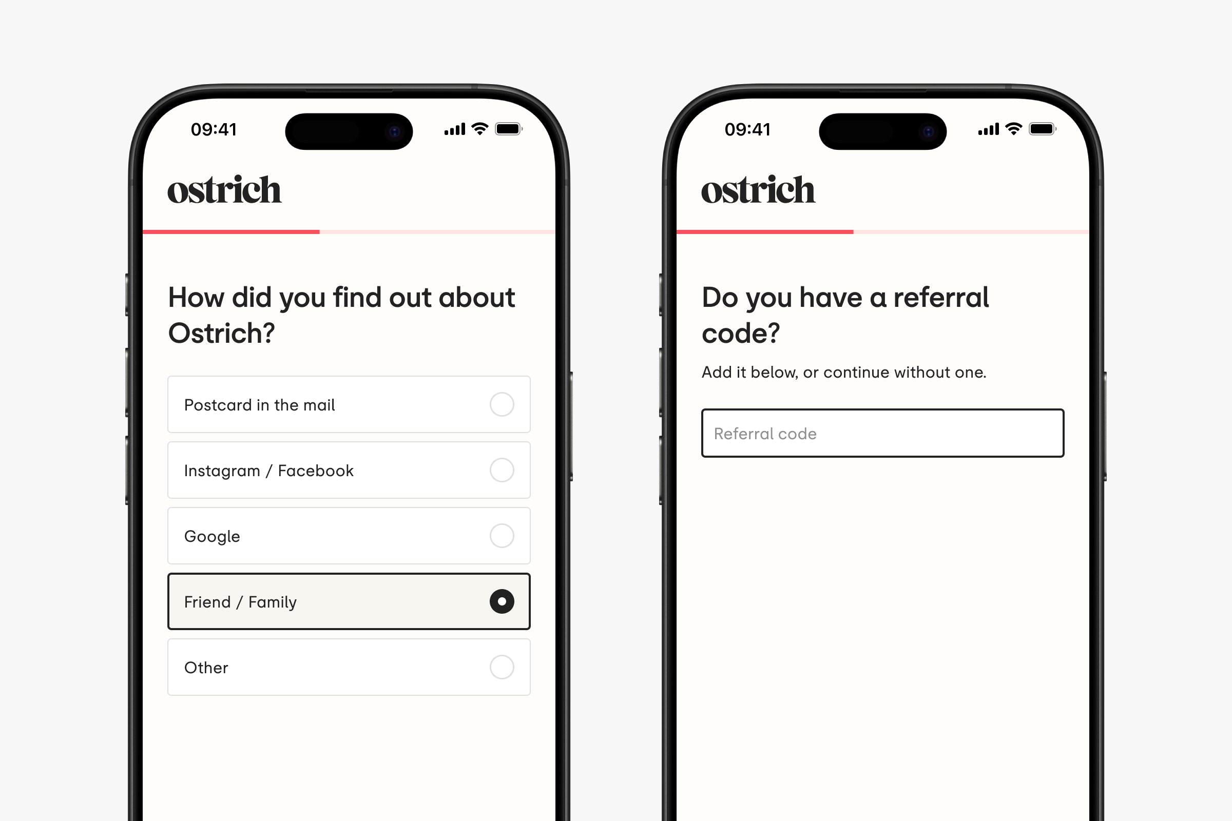 Share your personal referral code with your friend. You can find this in your Ostrich account.