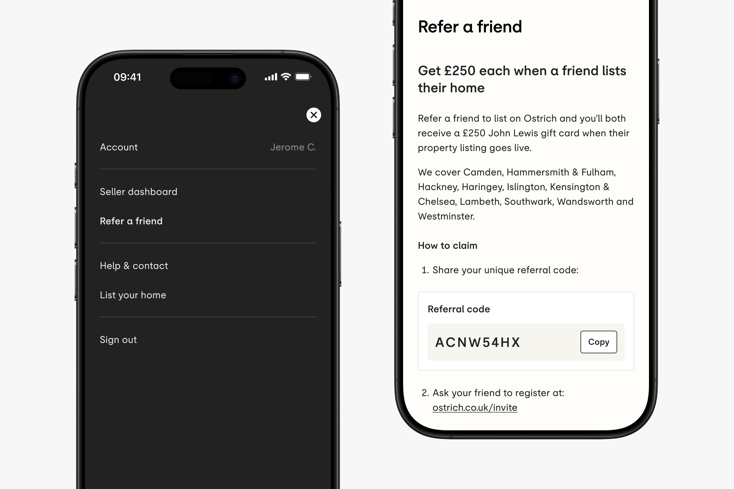 Know someone who's thinking of moving? Our referral programme lets both you and your friend receive a £250 John Lewis gift card when you introduce someone new to Ostrich.