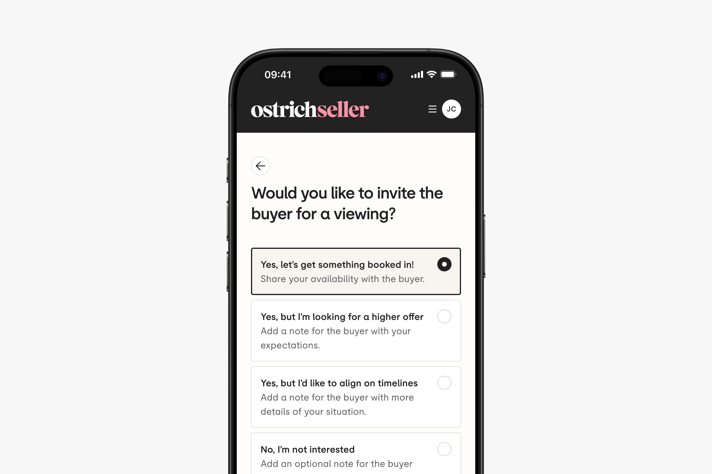 Since homeowners host their own viewings, the first step is to understand your schedule. You'll be prompted to set your availability for viewings so we can share it directly with the buyer.