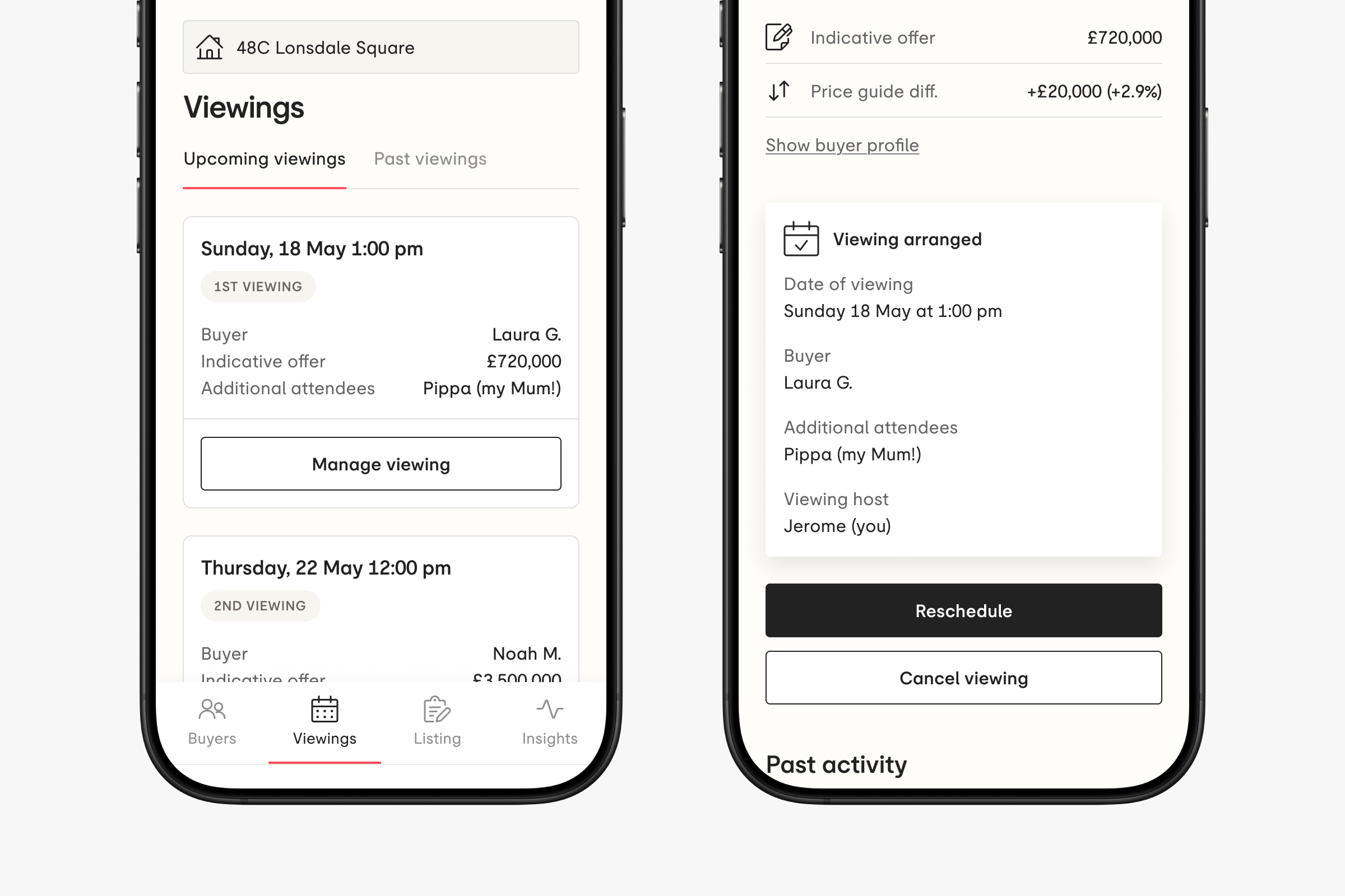 To view all the details of your conversation with a particular buyer, as well as cancel or reschedule, simply select Manage viewing. For more details check out our help guide on managing viewings.