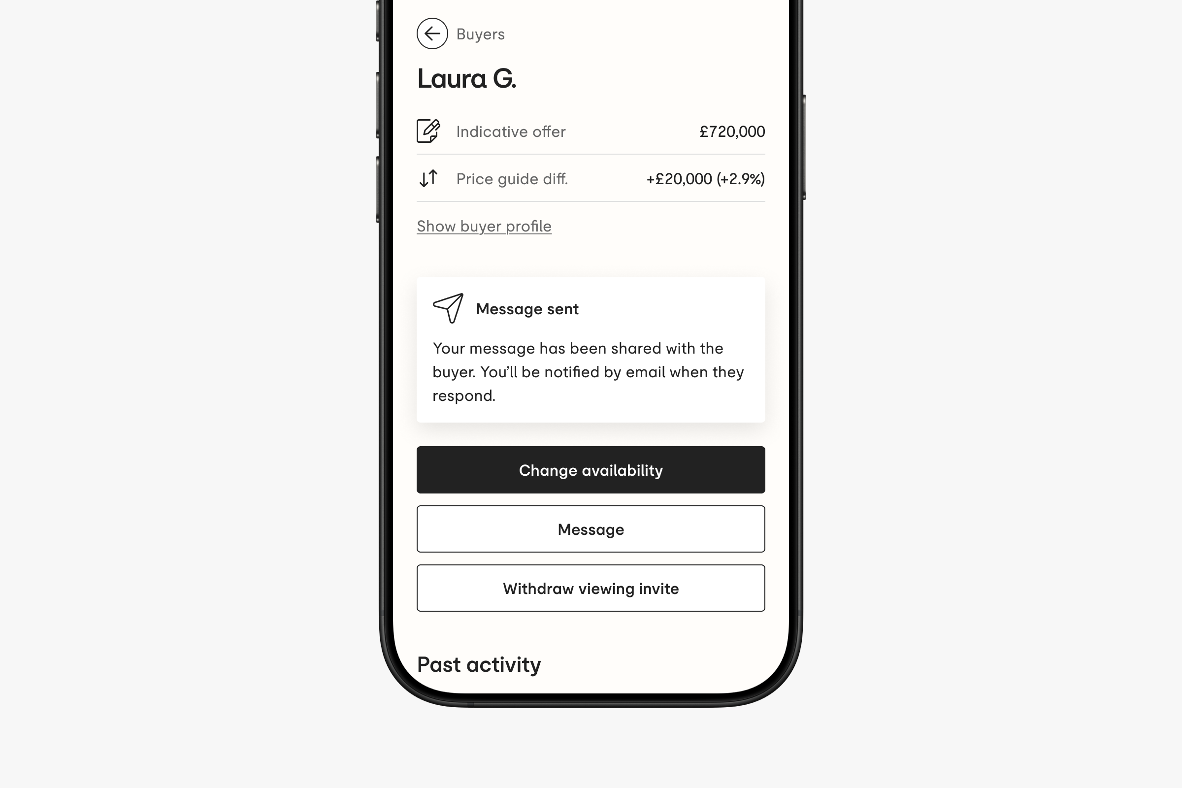 When a verified buyer is interested in viewing your home, you’ll receive an email notification with their request. This will include information about the buyer’s position, a note on what they love about your property, and an indicative offer.
